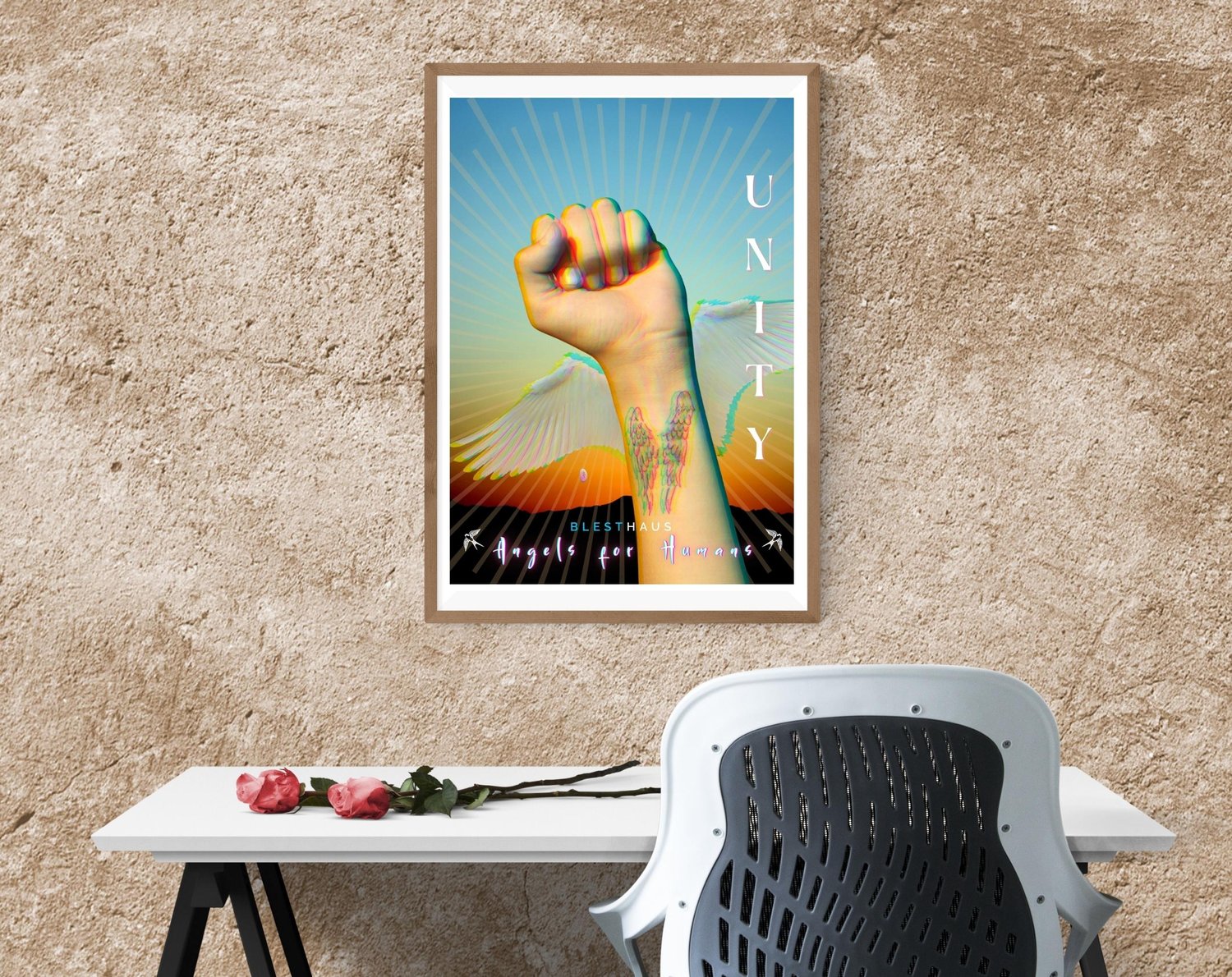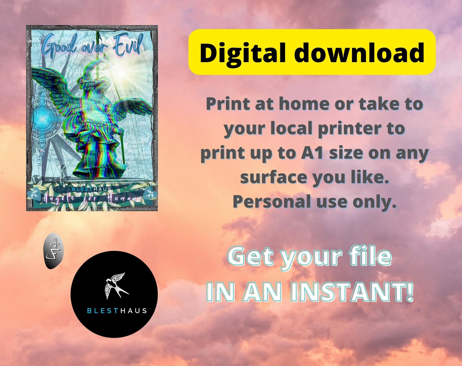 I believe these are unprecedented times for humanity and therefore my first collection is a series of posters with the theme Angels for Humans. Each poster is created digitally, using and combining available resources to bring messages of love, hope, and faith to personally and collectively empower each and every one of us.