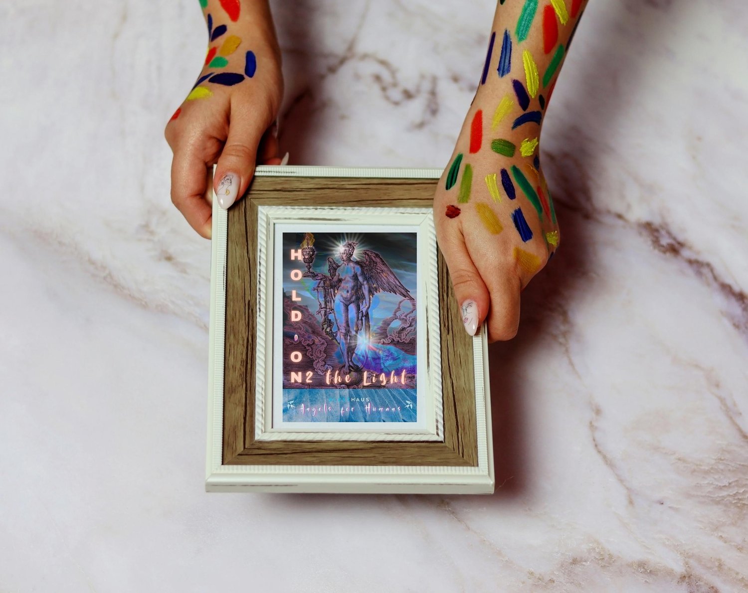 Angels are a theme close to my heart. Angels are messengers from the divine. Now more than ever, we as humans need an angel by our side.Hold On 2 the Light. There is always a light. Even in darkness. We are made of the stuff of stars. There is a divine spark within, and when all the stars in the night sky are dark, we are the carriers of the light.